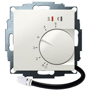 Elektronisches Unterputzthermostat eignet sich für die Regelung von Elektro Fussboden- und Wand-/Decken Heizung. Regelung oder Überwachung von Temperaturen in Wohnräumen, Büros und Hotels. Passend in alle gängigen Schalterprogramme. Polarweiß glänzend, 55x55 Abdeckung mit Knopf. Verschiedene Parameter können am Gerät eingestellt werden: Fernfühler, Limit, Temperaturabsenkung, Strom sowie Regelalgorithmus (Pulsweitenmodulation oder 2 Punkt Regelung). Bei Beschalten der Uhren-Klemme wird auf eine geringere Temperatur geregelt (einstellbar 3,5C / 6C / 9C). Mit LED-Statusanzeigen. Netzschalter (Ein/Aus) über Einstellrad bedienbar. Einstellbare Bereichseinengung im Einstellknopf als Heizkostenbremse. Eine unverlierbare Schraube mit Gewindeeinsatz zur Befestigung des Gehäusedeckels sowie praktische Steckklemmen erleichtert die Montage. Mit 4m Fernfühler im Lieferumfang. Montage in 55er UP-Dose.