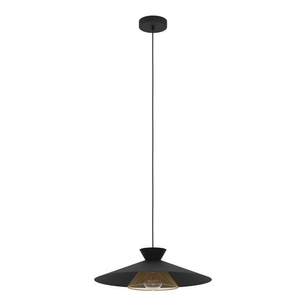 Die Pendelleuchte GRIZEDALE ist aus einem schwarzen Metall-Schirm mit einem inneren Element aus Messing gefertigt. Dank des Streckgitters in Messing, erhält die Leuchte einen eleganten Touch. Durch die japanische Formgebung des Schirms in Kombination mit dem schwarzen, runden Metall-Baldachin fügt sich die Hängelampe hervorragend in moderne Einrichtungen ein und ist ein besonderer Blickfang im Wohnzimmer oder im Esszimmer über dem Esstisch. Das Leuchtmittel ist nicht im Lieferumfang enthalten. Geeignet ist die Leuchte für jedes Leuchtmittel mit E27-Sockel.