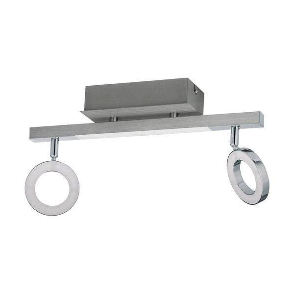 Die LED Deckenleuchte CARDILLIO 1 ist aus chromfarbenem Metall mit zwei ringförmigen Spotköpfen gefertigt. Zudem befindet sich eine längliche Leuchtfläche im geradlinigen Leuchtenarm. Die integrierten LEDs unter den satinierten Kunststoff-Abdeckungen spenden angenehmes warmweißes Licht. Der Deckenspot fügt sich nahtlos in den modernen Trend ein und bietet Ihnen dank der schwenkbaren Leuchtenköpfe die Möglichkeit, einzelne Lichtakzente im Raum zu setzen – egal ob in der Küche, im Wohnzimmer, Schlafzimmer, oder Flur.