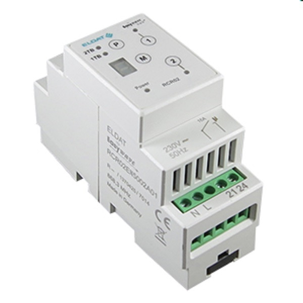 Der bidirektionale Hutschienen-Empfänger RCR02 2-Kanal dient dem potenzialfreien Schalten von zwei Netzspannungsverbrauchern und kann mit Sendern in der 1-Tast- und 2-Tast-Bedienung bedient werden, je Schaltausgang lassen sich 32 Sendecodes einlernen, zusätzlich kann ein Easywave neo Server in den Empfänger eingelernt werden, um die bidirektionalen Funktionalitäten zu nutzen, der Empfänger kann in den Betriebsarten EIN/AUS, IMPULS und TOTMANN betrieben werden, in der Betriebsart EIN/AUS stehen zusätzlich TIMER-Funktionen und eine LOGIK-Funktion zur Verfügung, Montage auf Standard-Hutschiene (35x7,5 mm)