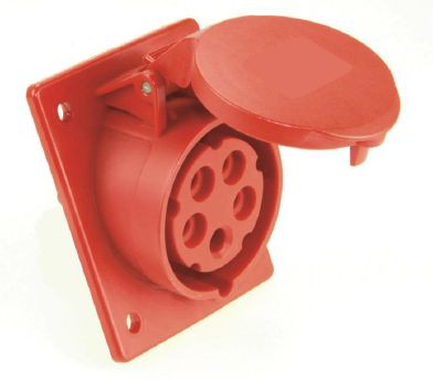 | Kurzbeschreibung | Anbausteckdose schräg 32A, 5P, 6h, IP44/54 Flansch 80x97mm - Lochabstand 60x73mm |