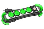 | Kurzbeschreibung | Industrie-Steckdosenleiste 4-fach, spritzwassergeschützt mit Schalter, zur Wand- oder Hängebefestigung mit auszeihbarer Öse und Haken. |