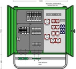 | Kurzbeschreibung | Verteilerschrank 246 kVA mit 4 RCD Typ B und 2 RCD Typ A, 10 CEE-Abgänge 16-125A und 6 Schutzkontakt-Steckdosen |