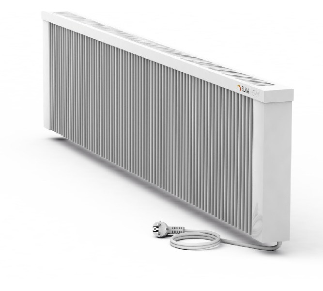 Professional Line - PLN-Serie Für begrenztes Platzangebot, Höhe nur 38,0cm. Einsetzbar bei Brüstungshöhen ab 60cm. Pulverbeschichtetes Stahlblechgehäuse RAL9010, vollflächig ausgelegt mit imprägnierten Schamottespeichersteinen, Einzelsegmentabschaltung im Falle von Überhitzung durch Abdecken, 230 V Direktanschluss, 1,90 m Netzzuleitung.