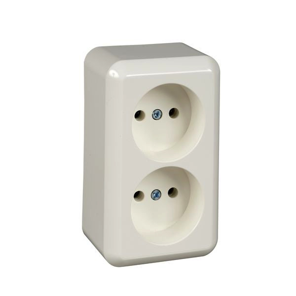 Steckdose ohne Schutzkontakt 2-fach, Farbe: reinweiß, 16 A 250V AC, Für Aufputzmontage, Schutzart IP 20, mit Grundplatte, für Montage auf brennbarem Untergrund geeignet. Schraubklemmen: Klemmbereich für Kupferleiter 1,5 mm und 2,5 mm, für den sicheren Anschluss von Aluminiumleitern 2,5 mm ohne Vorbehandlung.