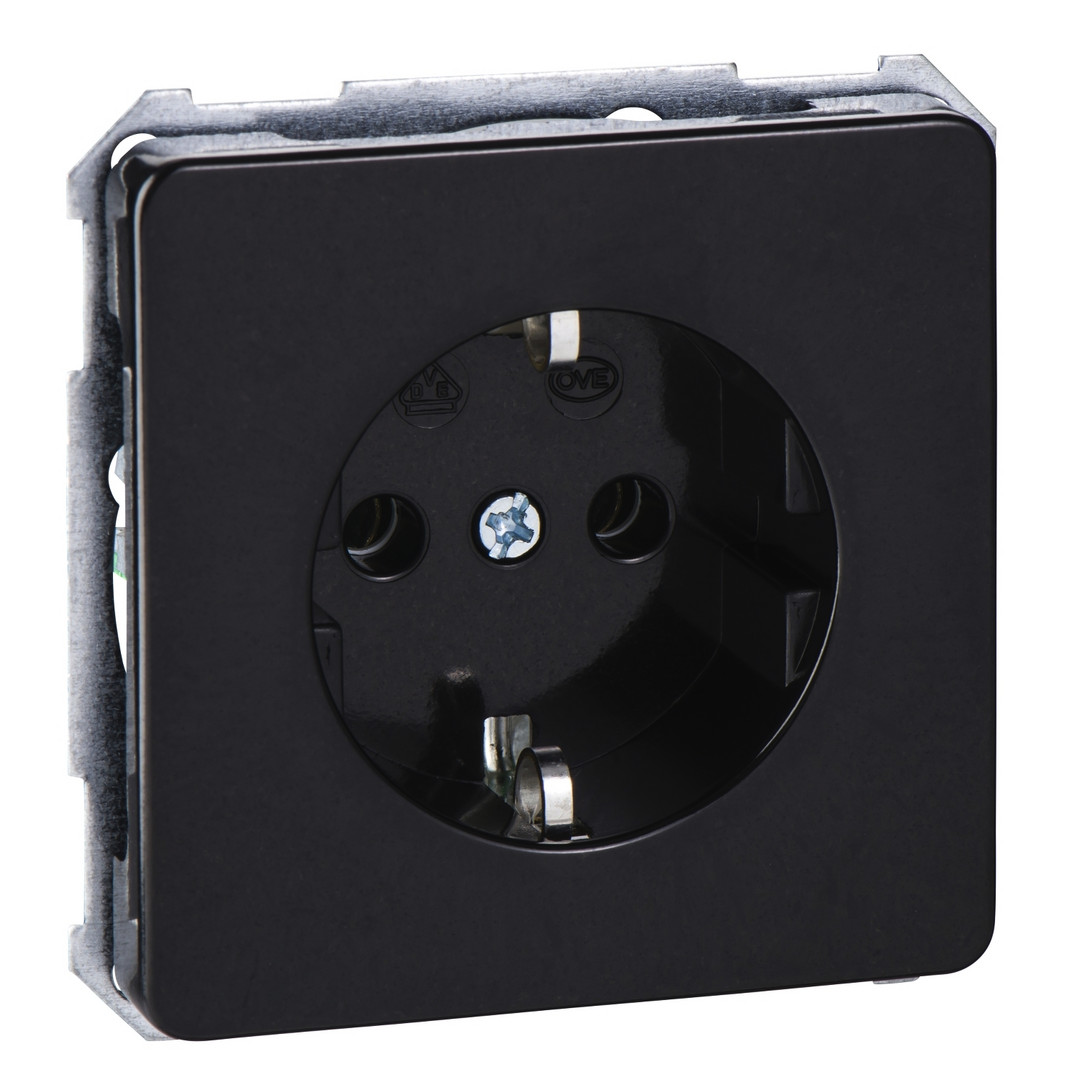 Fashion/Riva/Scala, Steckdoseneinsatz, schwarz Duro hochkratzfedelstahleffekt. 16 A 250V AC Steckdosen mit Steckklemme sind mit Überspannungsschutzmodul als Geräteeinschutz nachrüstbar. für Unterputzmontage, Schutzart IP 20, Steckklemmen Klemmbereich für Kupferleiter 1,5 mm² und 2,5 mm², Verbindungsklemmen nach VDE 0620.