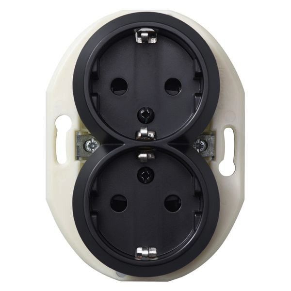 Doppelsteckdose mit erhöhtem Berührungsschutz Design Renova, Farbe schwarz. 16A, 250VAC, Steckklemme.
