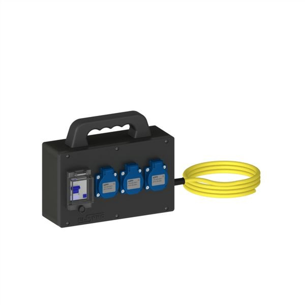 | Kurzbeschreibung | Sicherheitsverteiler Vollgummi 3m Ltg.,3xSCH, über RCD 2pol/25A/30mA/Typ A |