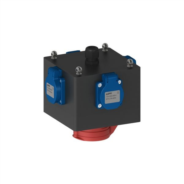 | Kurzbeschreibung | Hängeverteiler Vollgummi 1xCEE16/5,4xSchuko |