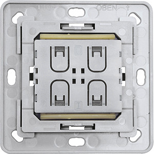 Funktaster-Einsatz mit EnOcean-Energiegenerator. Erzeugt die Energie für Funktelegramme selbst bei Tastendruck, daher ohne Anschlussleitungen und keine Stand-by-Verluste. Im Lieferumfang enthalten sind eine Halteplatte, ein Befestigungsrahmen für PTM-Module mit eingesetztem EnOcean-Modul PTM216Z (ZigBee Green Power) und eine Klebefolie. Die Halteplatte kann über einer Gerätedose mit einem Schraubabstand von 60 mm oder auf eine ebene Fläche geschraubt werden. Mit der beiliegenden Klebefolie kann der Funktaster an die Wand, auf Glas oder auf Möbel geklebt werden. Funktaster mit einer Wippe können zwei auswertbare Signale senden, Funktaster mit Doppelwippe können vier auswertbare Signale senden. ACHTUNG: Nicht kompatibel mit EnOcean-Funkaktoren!