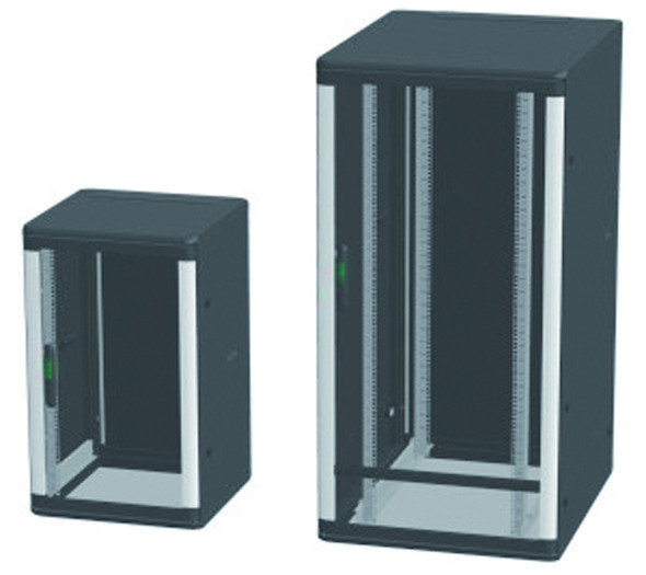 Je 2 integrierte, vertikale Systemnuten pro Aluminiumprofil zur universalen Montage von Zubehör in der Schrankbreite und Schranktiefe.