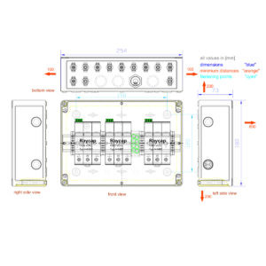 Bemessungsisolierspannung (Ui) 1000VDC, Bemessungsberiebsspannung (Ue) 1000VDC, Strang Bemessungsstrom (Inc) 32A, Bemessungsstrom (In) 32A (je MPP), Strang Auslegungsstrom (Isc max =Isc stc x 1,25) =40A, Auslegungsstrom (Isc max =SIsc stc x 1,25) = 40A (je MPP), Anzahl der Strings 3, Umgebungstemperatur -25°C - +35°C (kurzzeitig 40°C), Überspannungsschutz Klasse I+II, Eingangsklemmen MC - 4 Original, Ausgangsklemmen MC - 4 Original, Schutzklasse II, Schutzart IP65, Wandmontage, BxHxT (mm)254x180x111, Polycarbonat (PC) Gehäuse mit transparentem Schraubdeckel geeignet für die Montage im Innenbereich oder geschützten Außenbereich, Verschraubung Erde 1x M20 (d= 6,0-13,0), Druckausgleichselement 1x M12