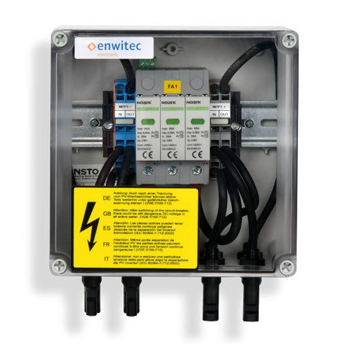 DC-Generatoranschlusskästen sind unverzichtbare Komponenten für private und gewerbliche Photovoltaikanlagen. Der GAK-S-1000-2R-X-BC-PC-1.1_MC4 (Artikelnummer 10015743) von enwitec ist ein leistungsfähiges Beispiel für diese Technologie. Ausgelegt für eine maximale Systemspannung von 1000 VDC, verfügt er über einen MPP-Tracker mit jeweils zwei Strings im Ein- und Ausgang. Obwohl keine Strangsicherung integriert ist, bietet er einen robusten Überspannungsschutz der Klasse I+II/BC. Die Anschlüsse erfolgen über MC4-Stecker, was eine einfache und sichere Installation ermöglicht. Mit einem Bemessungsstrom Isc von 32 ADC und 16 ADC pro Strang ist er für typische Anwendungen in der Photovoltaik optimal dimensioniert. Der kompakte Anschlusskasten misst 175 x 175 x 100 mm (BxHxT) und wiegt 2 kg, was eine flexible Montage erlaubt. Es ist zu beachten, dass dieser GAK keinen integrierten Trennschalter besitzt. Für detaillierte technische Informationen und optimale Integration in die jeweilige Photovoltaikanlage sollte das Datenblatt sorgfältig konsultiert werden.