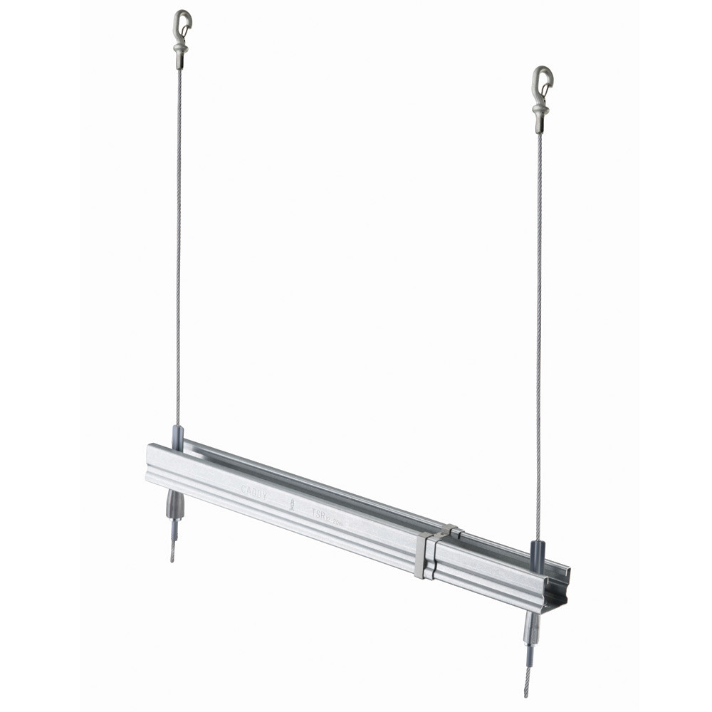 Die vormontierte Abhängelösung beinhaltet eine teleskopische Montageschiene, zwei Stahlseile mit Haken und zwei CADDY SPEED LINK Verschlüsse. Lässt sich auf die erforderliche Länge ausziehen und mit einem Federklip fixieren. Die teleskopische Montageschiene mit Strutprofil über die gesamte Länge erlaubt die Verwendung von Standard-Strutbefestigungselementen überall zwischen den Seilabhängungen. Trägt bis zu sieben 2" (DN 50) Kabelschutzrohre aus Metal, sechs 2" (DN 50) wassergefüllte Rohre bei einem Befestigungsabstand von 3 m, oder 450 mm breite Kabeltrasse. Jegliche Rohre können direkt ohne Abstand auf der Schiene befestigt werden, das spart Platz in Gebäuden wenn Installationsraum knapp ist. Zum Befestigen am Gebäude oder eines Gegenstandes wird das Seil einfach herumgeschlungen und der Haken am Seil eingehängt. Kann mit vielen nVent CADDY Befestigungselementen kombiniert werden. Handfest angezogen wird der Verschluss sicher in Position gehalten; ganz ohne Werkzeug. Kann einfach w