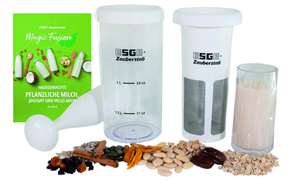 als Zubehör zu allen ESGE-Zauberstab-Modellen, zur schnellen und unkomplizierten Herstellung von pflanzlicher Milch aus verschiedenen Nüssen, Getreidesorten und Samen, vielseitige Anwendung: auch zur Herstellung von Suppen, Smoothies, Kaffee, Joghurt oder Saucen geeignet; inklusive umfangreichem Rezeptteil