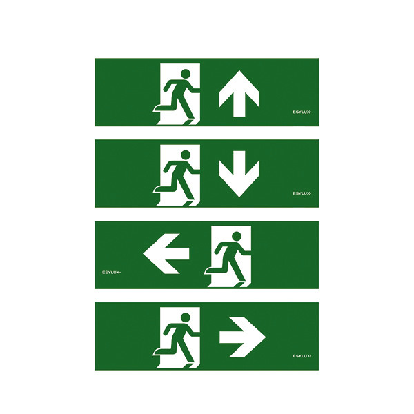 | Kurzbeschreibung | Piktogramm-Satz für Notleuchten der Serie SLX 14 Flat, 14 m, Pfeil rechts, links, unten und oben |