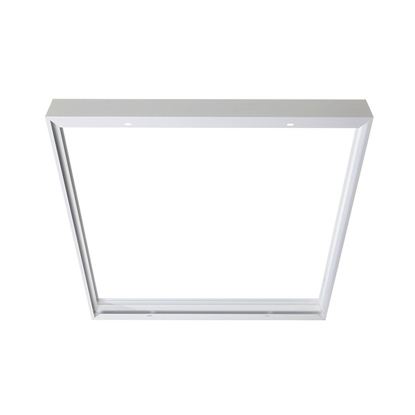 Deckenaufbaurahmen für LED-Deckeneinlegeleuchten JUNA 600 x 600 mm. 4 Rahmenseitenteile werden mittels Eckverbindern zusammengesteckt. Geringes Verpackungsvolumen.