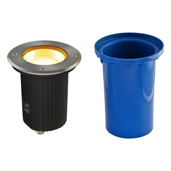 Der Leuchtenkörper ist aus Kunststoff, die Abdeckplatte hingegen aus V2A-Edelstahl gefertigt. Die Kabeleinführung erfolgt über die am Boden befindliche Kabelverschraubung, welche für Kabel bis 9mm Durchmesser geeignet ist. Die zweite im Lieferumfang befindliche Kabelverschraubung kann optional an der Leuchte angebracht werden, wodurch eine Durchverdrahtung problemlos möglich ist. Es besteht die Möglichkeit, die Leuchte ohne den im Lieferumfang enthaltenen Kunststoff-Einbautopf zu montieren, in diesem Fall beträgt die Einbautiefe 180mm und der benötigte Lochausschnitt 137mm. Das mitgelieferte LED-Leuchtmittel kann bei Bedarf jederzeit ausgetauscht werden. Die maximale Überfahrgeschwindigkeit beträgt 20km/h, der Schwenkwinkel beträgt 30°.