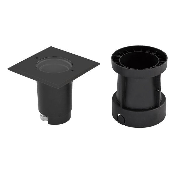 Der Leuchtenkörper ist aus Aluminium, die Abdeckplatte hingegen aus V2A-Edelstahl gefertigt. Die Kabeleinführung erfolgt über die am Boden befindliche Kabelverschraubung, welche für Kabel bis 9mm Durchmesser geeignet ist. Es besteht die Möglichkeit, die Leuchte ohne den im Lieferumfang enthaltenen Kunststoff-Einbautopf zu montieren, in diesem Fall beträgt der Lochausschnitt 96mm während die Einbautiefe unverändert bleibt. Durch die GU10 Hochvoltfassung können unterschiedliche Leuchtmittel bis max. 35W in der Leuchte betrieben werden. Der Schwenkwinkel beträgt 10°. Zusätzlich ist ein mattes Schutzglas im Lieferumfang enthalten.