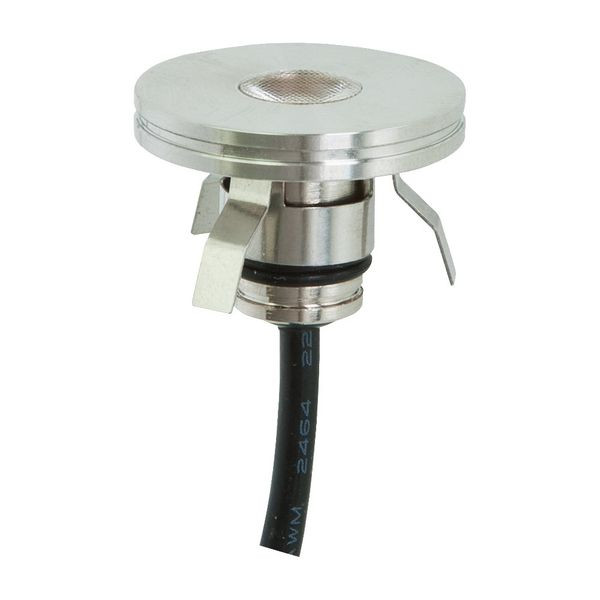V4A-Edelstahl Deckeneinbaulichtpunkt für vielfältige Anwendungen im Innenbereich. Sowohl Effektbeleuchtungen, Akzentuierte Beleuchtung und vieles mehr, lassen sich mit dieser Leuchte umsetzten. Es können mehrere Leuchten über ein Betriebsgerät betrieben werden, wodurch sich verschiedene Lichtgruppen innerhalb eines Raums schalten lassen. Der Lichtpunkt verfügt über eine 2m lange Anschlussleitung. Optional könnte die Haltefeder entfernt werden um den Lichtpunkt in die Wand einzusetzen, hierbei verringert sich der Lochausschnitt auf 11mm. Da die Leuchte über 350mA betrieben wird, sind die Leuchten in Reihe zu schalten.