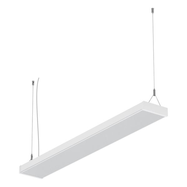 LED Pendelleuchte für verschiedene Anwendungsbereiche, wie z. B. flächendeckende, aber auch effektvolle Beleuchtungen in Flur, Wohnzimmer, Büro, und vieles mehr. Durch den großflächigen Lichtaustritt wird dabei immer eine sehr homogene Ausleuchtung des Raumes erreicht. Die Leuchte kann auch mit einer Eingangsspannung von 180-264V/DC betrieben werden. Durch die abnehmbaren Endkappen und der Möglichkeit zur Durchgangsverdrahtung ist es möglich, mehrere Leuchten miteinander zu verbinden und eine durchgängige Lichtlinie zu bilden. Mittels Schalter kann eine von zwei möglichen Farbtemperaturen eingestellt werden. Die möglichen Farbtemperaturen und daraus resultierenden Lumen sind: 30W: 3000K (3780lm) und 4000K (4200lm). 85% des Lichtanteils entfallen auf das Downlight, 15% auf das Uplight. Das Panel hat einen Abstrahlwinkel von 80°. Die Farbe entspricht ähnlich RAL9016. Die Leuchte ist zudem Flicker-Free. L80B10 bei 50.000h. Protokoll: DALI2, DT6, Push-dim.
