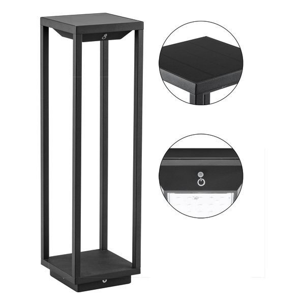Solar Wegeleuchte gefertigt aus Aluminium im Druckgussverfahren und pulverbeschichtet. Die Leuchte ist perfekt zur Beleuchtung von Gehwegen, als Randbeleuchtung für Terrassen oder Beete und vieles mehr geeignet. Da kein Stromanschluss nötig ist, kann diese bei Bedarf jederzeit einfach versetzt werden. Je nach Standort benötigt die Leuchte mindestens 6-8 Stunden bis der Akku voll aufgeladen ist. Mit voll geladenem Akku ist eine Betriebszeit von max. 12 Stunden möglich. Zusätzlich ist die Leuchte mit einem Dämmerungssensor versehen, so dass sich die Leuchte erst einschaltet, sobald 20 Lux unterschritten werden. Für einen sicheren Stand ist im Lieferumfang ein Erdspieß aus Kunststoff enthalten. Batterietyp: 18650 3,7V 2200mAh.