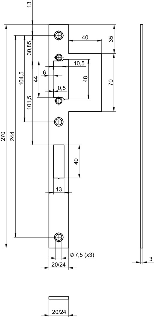 | Kurzbeschreibung | E-Öffner Schließblech OS F3x24x270,L40,EST,L/R,Profix2 |