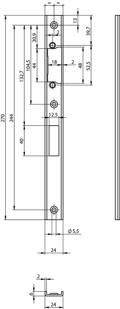 | Kurzbeschreibung | E-Öffner Schließblech OS U6x24x270,EST,L,Profix2 |