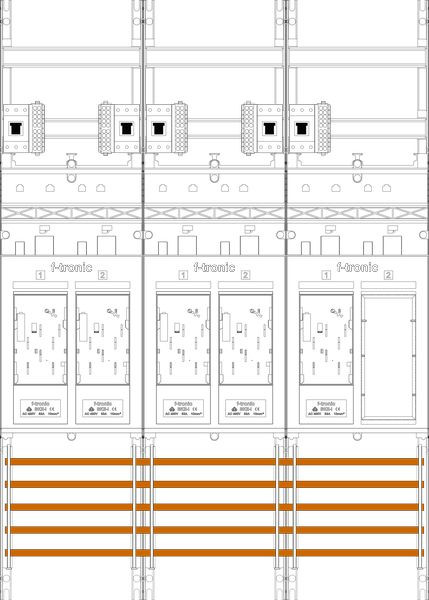 Zählerfeld 3-feldrig, 5-Zählerplätze eHZ ,1-Reserveplatz, Höhe 1050 mm, Breite 750 mm, Sammelschienensystem 5-polig, mit Hauptschalter plombierbar