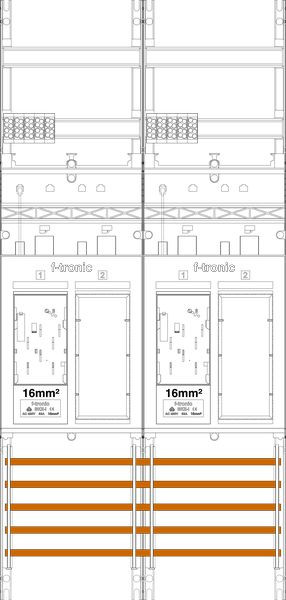 Zählerfeld 2-feldrig, 2-Zählerplätze eHZ mit 16mm² Verdrahtung,mit Datenschnittstelle, 2-Reserveplätze, Höhe 1050 mm, Breite500 mm, Sammelschienensystem 5-polig