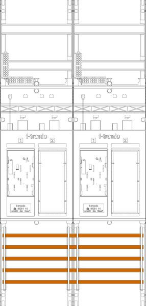 Zählerfeld 2-feldrig, 2-Zählerplätze eHZ mit Datenschnittstelle, 2-Reserveplätze, Höhe 1050 mm, Breite 500 mm, Sammelschienensystem 5-polig