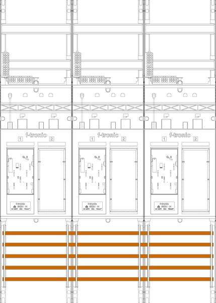 Zählerfeld 3-feldrig, 3-Zählerplätze eHZ mit 16mm² Verdrahtung,mit Datenschnittstelle, 3-Reserveplätze, Höhe 1050 mm, Breite 750 mm, Sammelschienensystem 5-polig