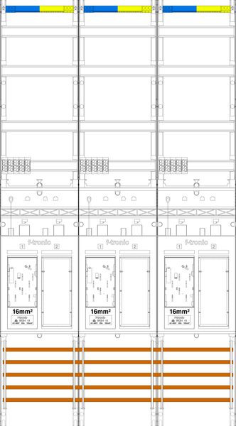 | Kurzbeschreibung | Zählerfeld ER39DS-16,3-feldrig, H=1350mm, 3-eHZ 16mm² mit DS, 3 Res. |