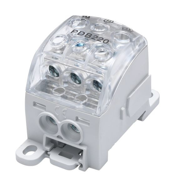 Phasenverteilerblock 220A, PDB220. Farbe: grau/transparent. Anzahl Pole 1. Passend für CU Leiter
