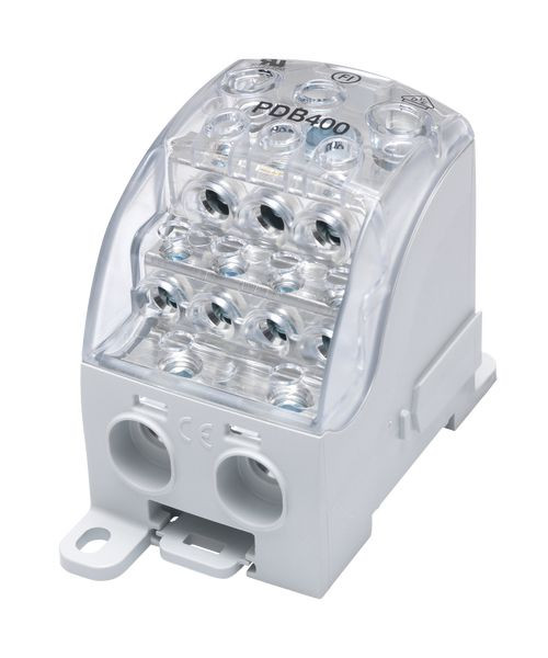 Phasenverteilerblock 400A, PDB400. Farbe grau/transparent. Anzahl Pole 1. Passend für CU Leiter