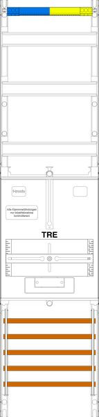 Tariffeld 1-feldrig, Höhe 1050 mm, Breite 250 mm, 1-Tarif-Rundsteuer-Empfänger 3.HZ, 300 mm, Verteilerfeld 3-reihig, Sammelschienensystem 5-polig