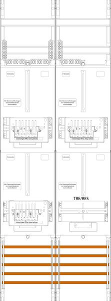 Zählerfeld 2-feldrig, 3-Zählerplätze 3.HZ, Höhe 1350 mm, Breite 500 mm,1 -Reserveplatz, Sammelschienensystem 5-polig, mit Zählersteckklemmen-Set