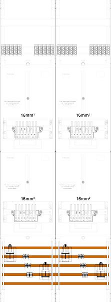 Zählerfeld 2-feldrig, 4-Zählerplätze 3.HZ 16mm² Verdrahtung, Höhe 1350 mm, Breite 250 mm,Sammelschienensystem 5-polig, mit Zählersteckklemme und Stiften