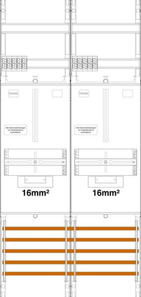 Zählerfeld 2-feldrig, 2-Zählerplätze 3.HZ mit 16mm² Verdrahtung, Höhe 1050mm, Breite 500mm, Sammelschienensystem 5-polig