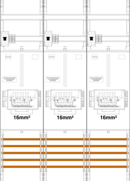 | Kurzbeschreibung | Zählerfeld Z31B-16-ZSK-HSP, 3-feldrig, H=1050mm, 3-3.HZ, 16mm², 3 ZSK-Set, 3 HSP |