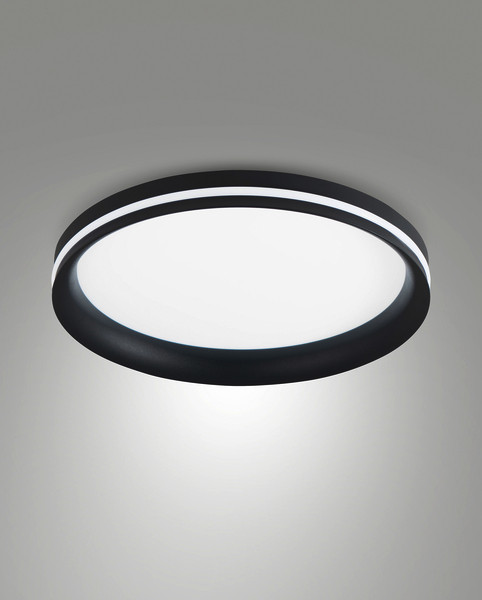 Metall, Diffusor Methacrylat opal, einstellbare Lichtfarbe warmweiß - neutralweiß, per Schalter in Stufen dimmbar, mit seitlichem Lichtaustritt, H x Ø 7,5 x 45 cm, 52 Watt, 4900 Lumen, schwarz