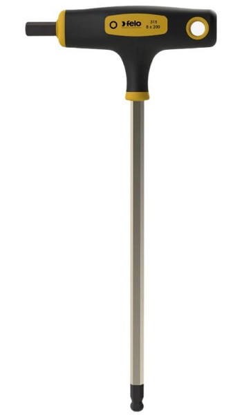 Felo 31508760 Doppelter metrischer Sechskant-T-Griff mit Kugelkopf, 8,0 mm x 200 mm Das lange Ende verfügt über eine Kugelspitze zum Anziehen schwer zugänglicher Schrauben. Das Griffende ist mit einem kurzen Schraubendreher für hohe Drehmomente ausgestattet. Eine Aufhängeöse ermöglicht die einfache Aufbewahrung. Der ergonomische 2-Komponenten-Griff mit Softgrip-Beschichtung reduziert Druckstellen. Der Hartplastikkern sorgt für Langlebigkeit, auch bei höchsten Drehmomenten. Die matte Chrombeschichtung mit schwarzen Spitzen rundet das Design ab . Griffbreite: 100 mm, Klingenlänge: 200 mm. Merkmale: Kugelende Oberfläche: Satinierte Chromoberfläche Griffmaterial: Mehrkomponentenmaterial Einzelperson / Set: Einzelperson Werkzeugtipp-Stil: Hex Spitzengröße: Sechskant metrisch 8,0 mm