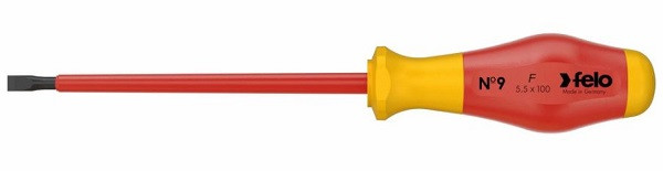 Felo 91305590 Dielektrischer Schlitzschraubendreher SL5,5x1,0x125 Der dielektrische Schlitzschraubendreher der Serie 900 ist für die Bearbeitung von SL 5,5 x 1,0-Schrauben bei Spannungen bis zu 1000 V ausgelegt. Der ergonomisch geformte Griff und das rutschfeste Material (Soft Grip) gewährleisten optimale Kraftübertragung. Dank der speziellen Zweikomponenten-Griffkonstruktion rutscht das Werkzeug nicht von der Arbeitsfläche. Die Klingen aus speziellem Chrom-Molybdän-Vanadium-Stahl sorgen für beste Ergebnisse. Die schwarze Spitze (Black-Tip) garantiert präzisen Sitz in der Schraube. Länge: 225 mm Breite: 35 mm Höhe: 35 mm Gewicht: 101 g Land: Deutschland Spline-Typ: SL SHK: 4007157647399 Schlagfestigkeit: Nein Durchschlagsfestigkeit: Ja