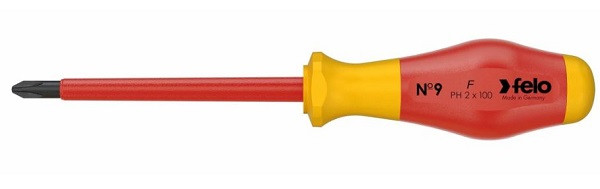 Felo 91420390 Dielektrischer Kreuzschlitzschraubendreher PH2X100 Der dielektrische Kreuzschlitzschraubendreher der Serie 900 ist für Arbeiten mit PH2-Schrauben bei Spannungen bis zu 1000 V ausgelegt. Der ergonomische Griff und das rutschfeste Material (Soft Grip) sorgen für optimale Kraftübertragung. Dank der speziellen Konstruktion des Zweikomponentengriffs rollt das Werkzeug nicht weg. Die Klingen aus speziellem Chrom-Molybdän-Vanadium-Stahl gewährleisten beste Ergebnisse. Die schwarze Spitze (Black-Tip) sorgt für präzisen Sitz in der Schraube. Länge: 200 mm Breite: 35 mm Höhe: 35 mm Gewicht: 122 g Land: Deutschland Spline-Typ: PH SHK: 4007157647498 Schlagfestigkeit: Nein Durchschlagsfestigkeit: Ja