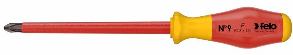 Felo 91530490 Dielektrischer Kreuzschlitzschraubendreher PZ3X150 Der dielektrische Kreuzschlitzschraubendreher der Serie 900 ist für Arbeiten mit PZ3-Schrauben bei Spannungen bis zu 1000 V ausgelegt. Der ergonomische Griff und das rutschfeste Material (Soft Grip) sorgen für optimale Kraftübertragung. Dank der speziellen Konstruktion des Zweikomponentengriffs rollt das Werkzeug nicht weg. Die Klingen aus speziellem Chrom-Molybdän-Vanadium-Stahl gewährleisten beste Ergebnisse. Die schwarze Spitze (Black-Tip) sorgt für präzisen Sitz in der Schraube. Länge: 259 mm Breite: 35 mm Höhe: 35 mm Gewicht: 202 g Land: Deutschland Keilwellentyp: PZ Schlagfestigkeit: Nein Durchschlagsfestigkeit: Ja