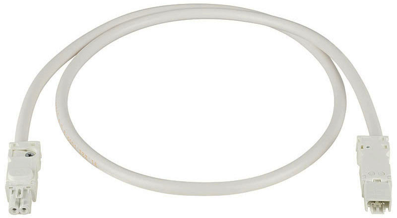 AC-Verbindungsleitung zum Hintereinanderschalten von 2 bis max. 7 LED-Leuchten mit Stecker und Buchse, Länge 1 Meter, Farbe Buchse und Stecker weiß