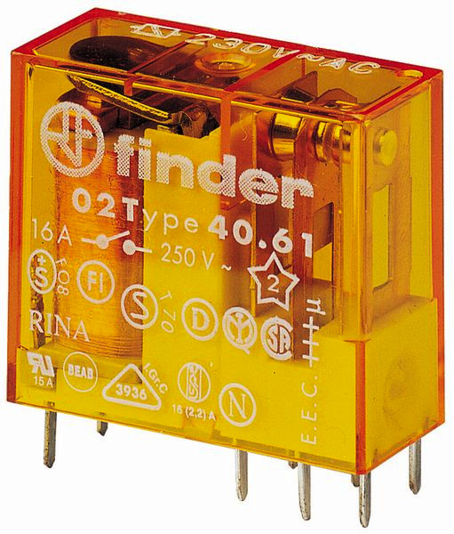 Steck-/Printrelais 1 Schließer (AgSnO2) für 16 A / 250 V AC, Kontaktpinraster: 5.0 mm Spulendaten: 24 V AC, 1,2 VA, 320 Ohm, Relaisschutzart: RT II - siehe technische Erläuterungen Hinweise für automatischen Lötprozess