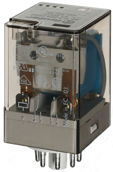 | Kurzbeschreibung | Relais mit Steckanschlüssen, 2 Wechsler 10 A, Spule 6 V DC |
