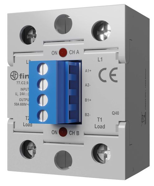 | Kurzbeschreibung | Relais mit 2 SSR-Kontakten 50 A/24 bis 660 V AC, Einschaltstrom bis 500 A für 10 ms, Eingang 24 V DC, 2 DC-Eingänge |
