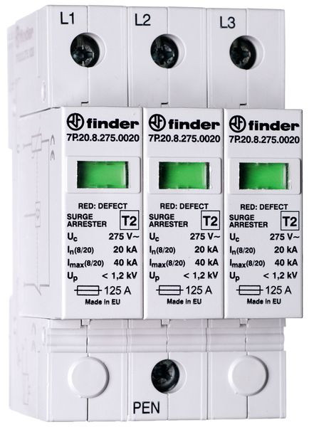 | Kurzbeschreibung | Überspannungsableiter Typ 2, 3 Varistoren, für 3-phasige TN-C Netze mit PEN |